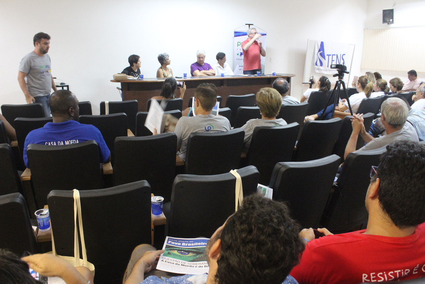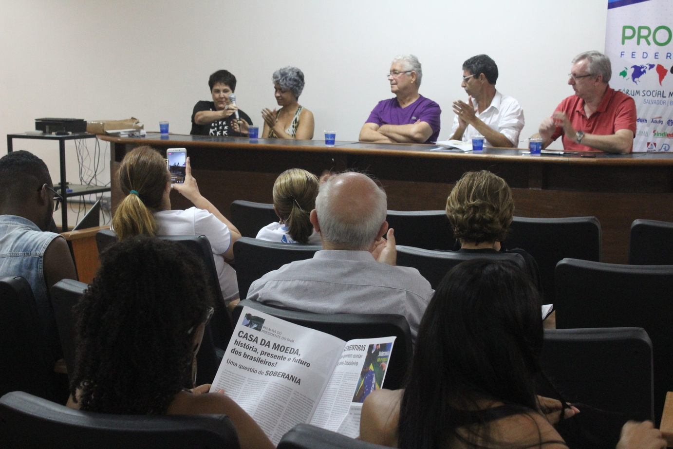 O Sindicato Nacional dos Moedeiros participou do debate Ciência, Tecnologia e Soberania com o senador Roberto Requião e o ex-ministro Celso Pansera. Participaram da mesa o senador Roberto Requião (PMDB-PR), o deputado federal Celso Pansera (PT-RJ), a presidente do Atens-Sidicato, Maria do Rosário Alves de Oliveira, o presidente do PROIFES-Federação, Nilton Brandão e a vice-presidenta da entidade, Luciene Fernandes.