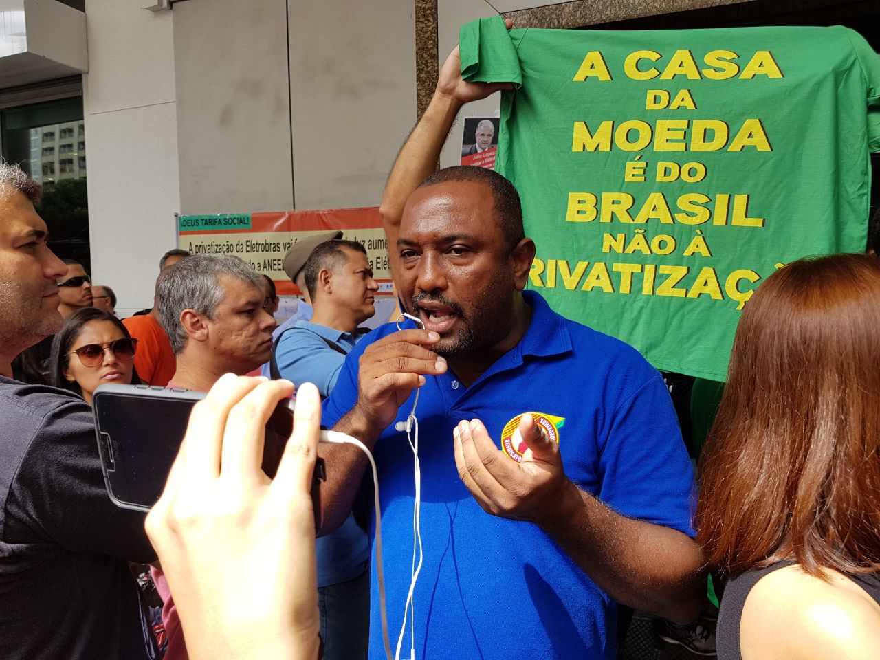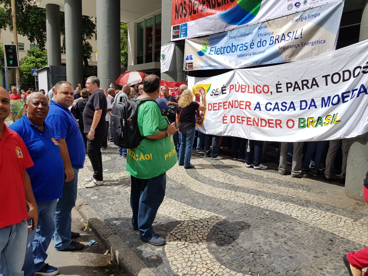 Os trabalhadores moedeiros e seu sindicato marcaram presença no Dia Nacional de Luta e Mobilização contra a Privatização que se concentrou na porta da Eletrobrás.